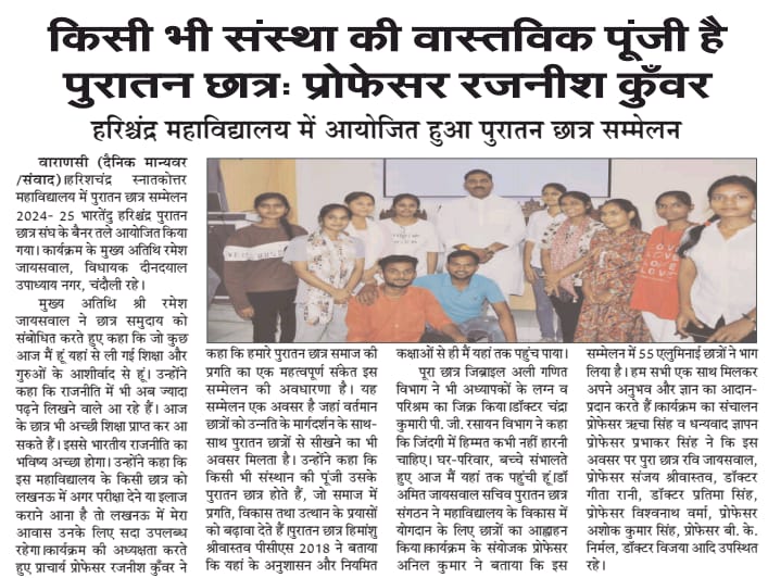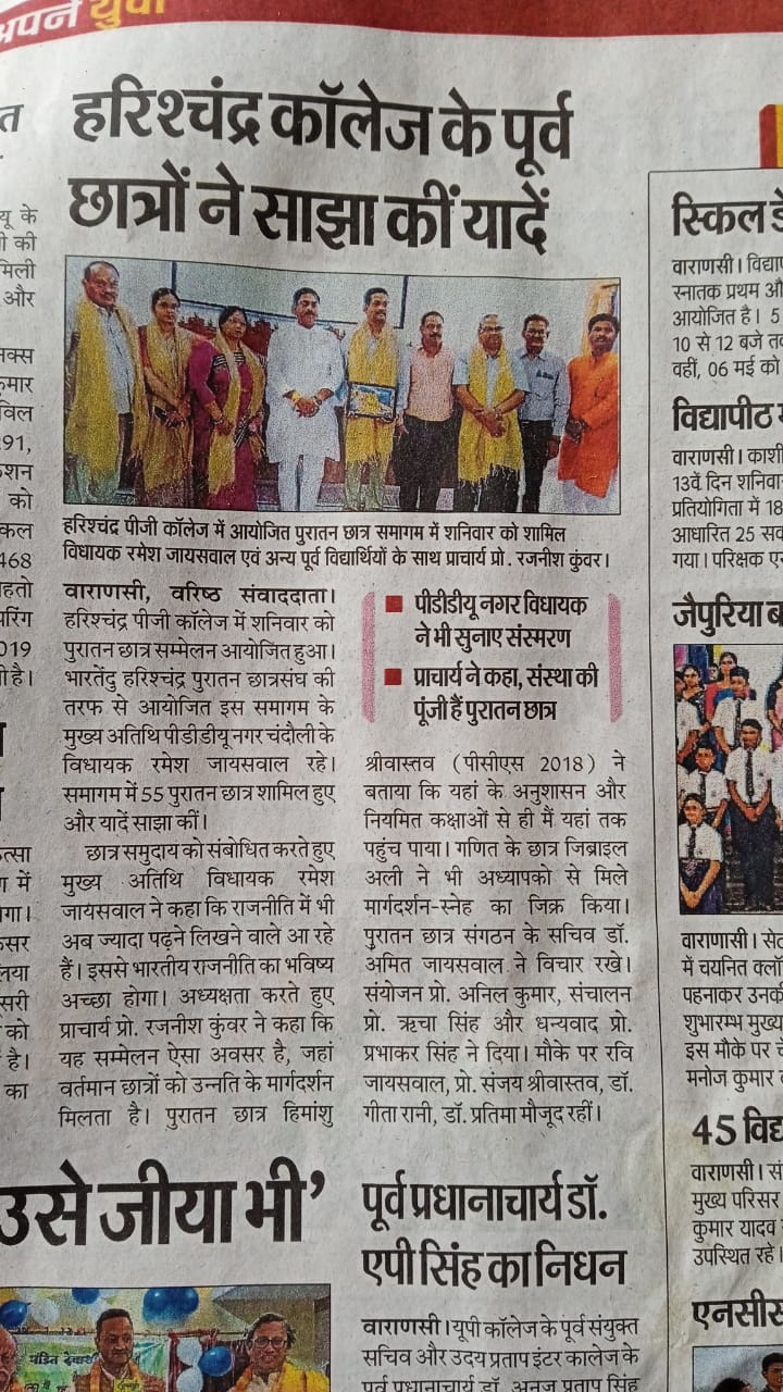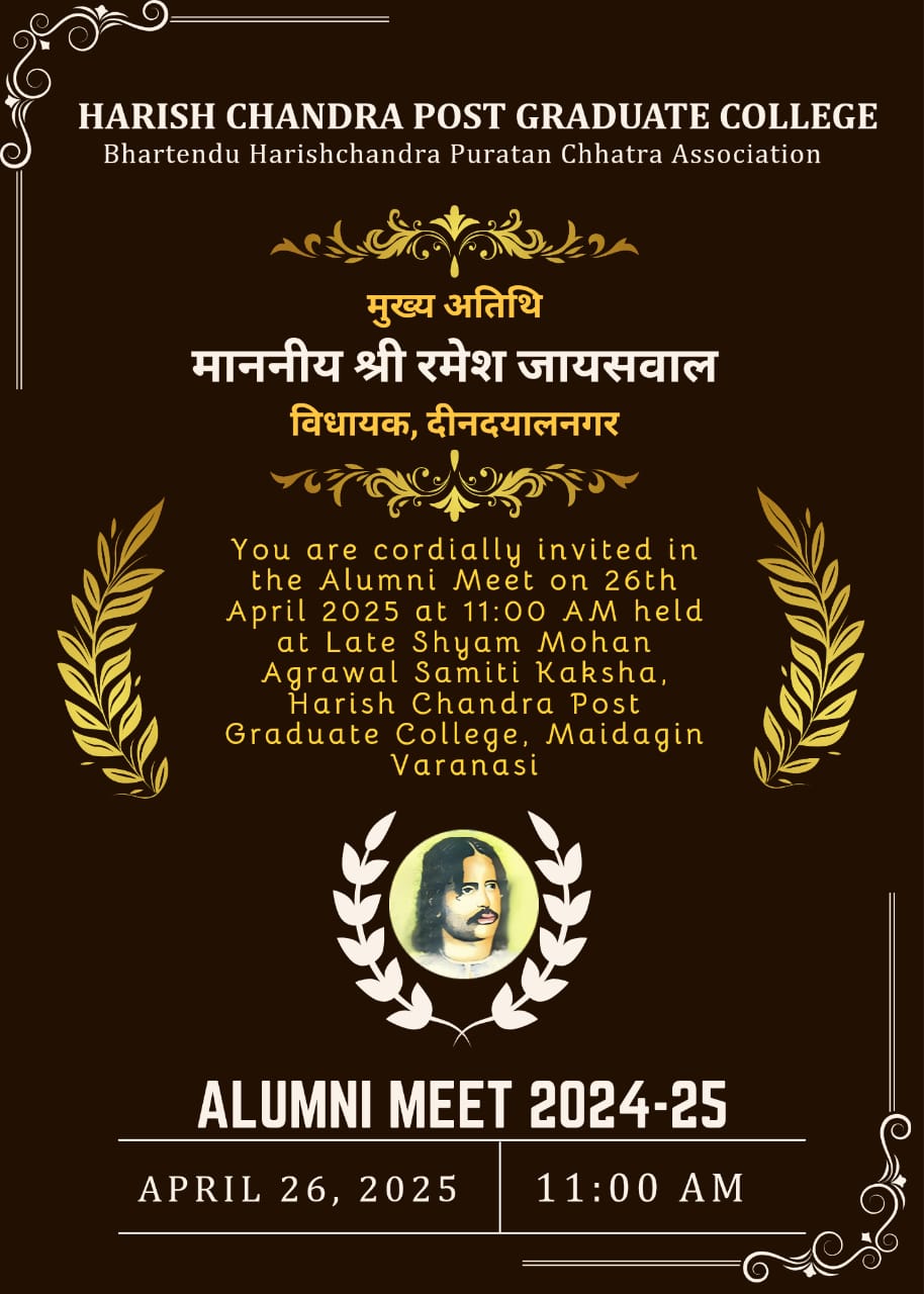 HARISH CHANDRA P.G. COLLEGE VARANASI संगोष्ठी का विषय : शिक्षा एवं समाज : भारतेन्दु हरिश्चन्द्र की दृष्टि दिनांक - 29 अगस्त 2018ALUMNI सदस्यता से सम्बंधित जानकारी एवं सदस्यता फॉर्म